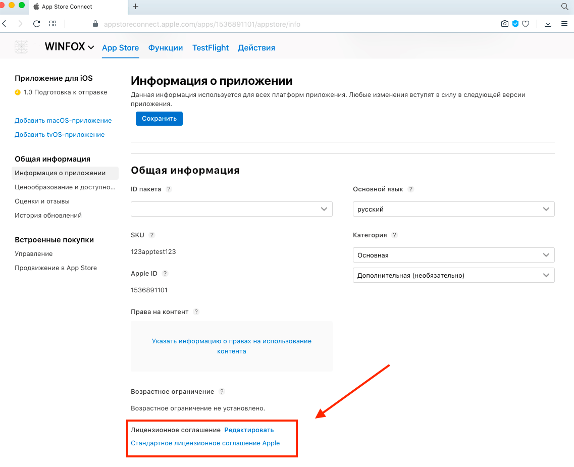 Теперь нужно добавить общую информацию о вашем приложении в App Store Connect. К такой информации относятся название, описание, политика конфиденциальности, лицензионное соглашение и другие данные.