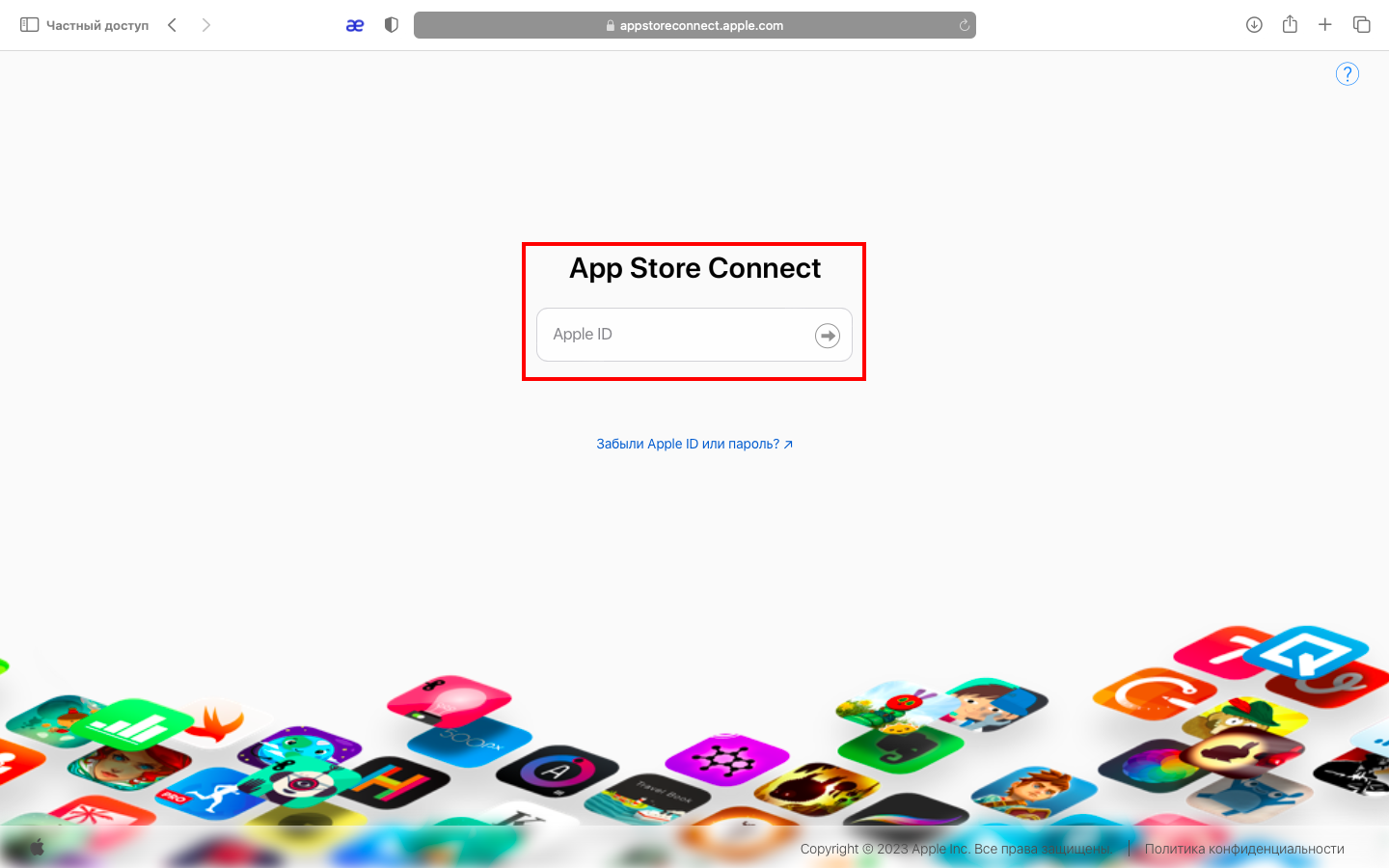 Чтобы войти в App Store Connect, перейдите на appstoreconnect.apple.com/login и введите свой Apple ID.