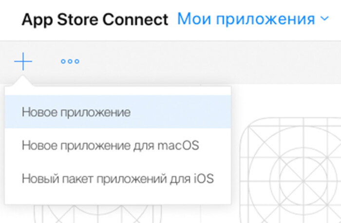 Чтобы начать вводить данные, создайте страницу приложения в App Store Connect. Для этого выберите «Мои приложения» на панели App Store Connect, нажмите на «+» и выберите «Новое приложение».