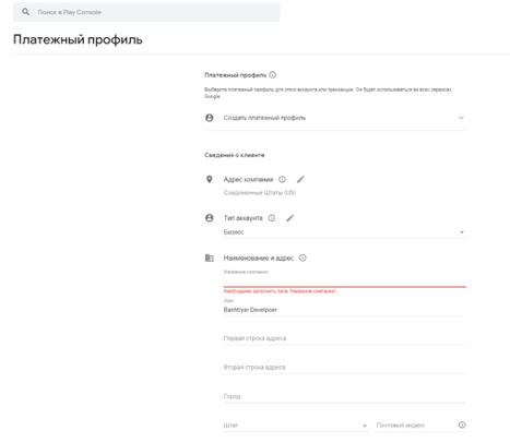 Чтобы создать платежный профиль, зайдите в Google Play Console, перейдите в раздел «Все приложения», кликните «Настройки», выберите пункт «Аккаунт разработчика» и нажмите «Настройки оплаты».