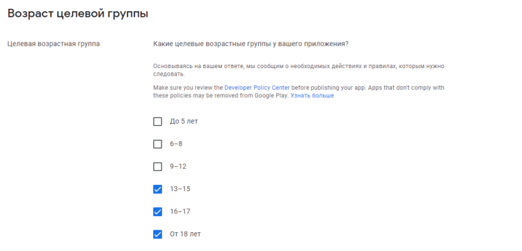 Если у приложения не будет возрастного рейтинга, оно будет заблокировано для некоторых стран и пользователей.