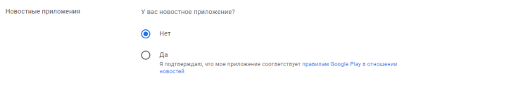 Новостные приложения. Если у вас новостное приложение, поставьте галочку.