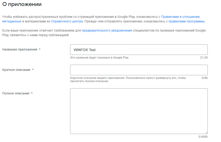 Полное описание. Сформулируйте основные функции и преимущества приложения. Составьте текст так, чтобы главное отображалось в начале текста и пользователю не нужно было прокручивать текст вниз. А еще оптимизируйте этот текст для поиска — у Google есть специальные рекомендации.
