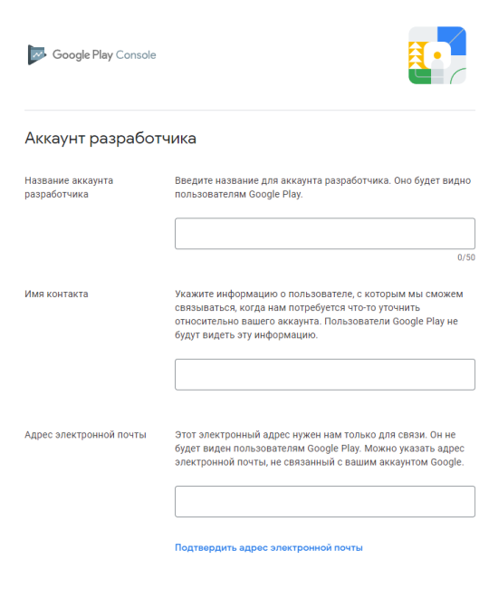 Имя разработчика будут видеть все пользователи Google Play. Поэтому придумайте краткое и читабельное имя и не используйте имена из серии ivanpetrov или slava1992. Идеально, если имя пользователя будет повторять название вашей компании или продукта.