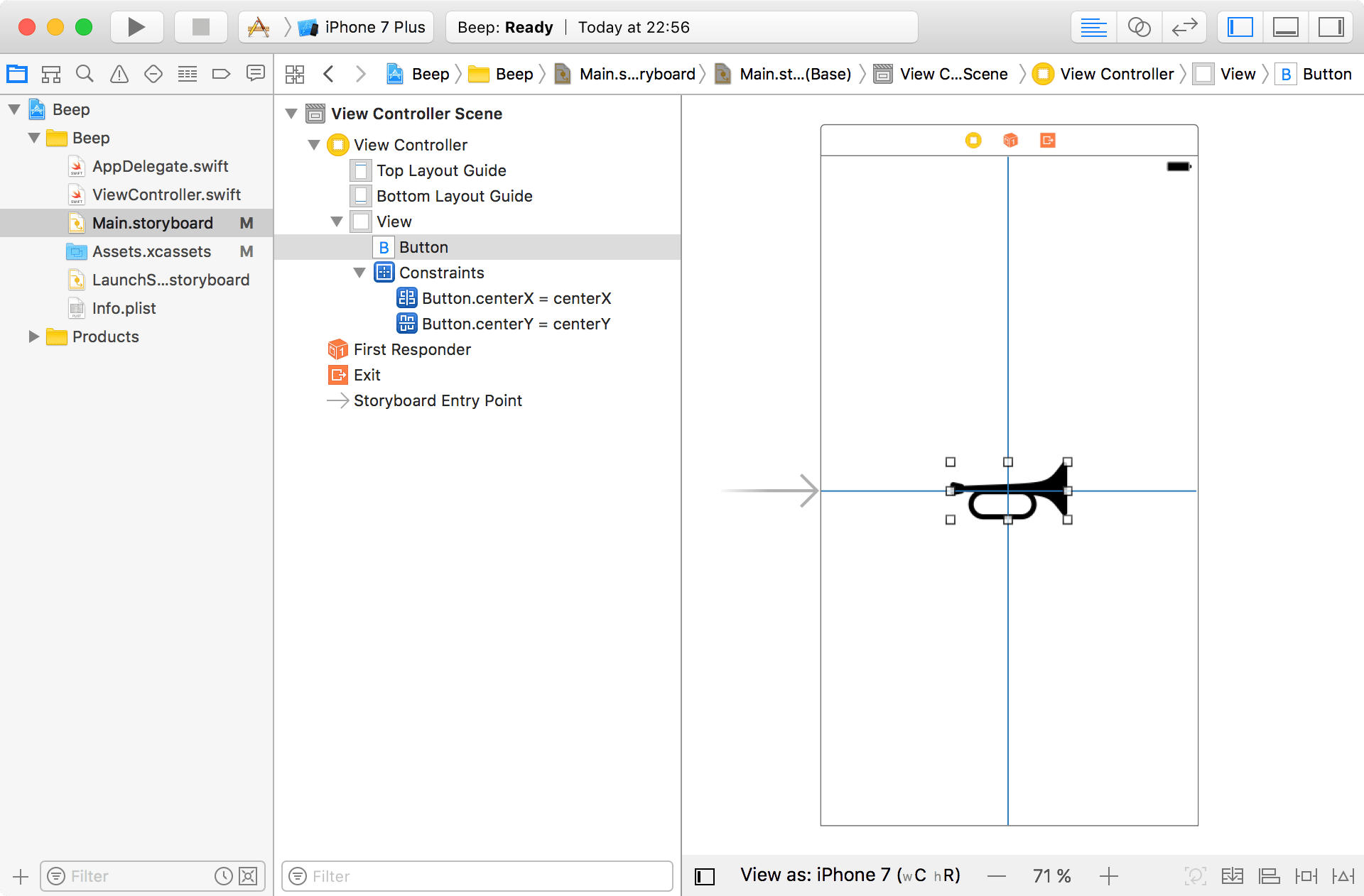3. Это создаст ограничения для макета, благодаря которым кнопка всегда будет оставаться в центре, независимо от размера iPhone.