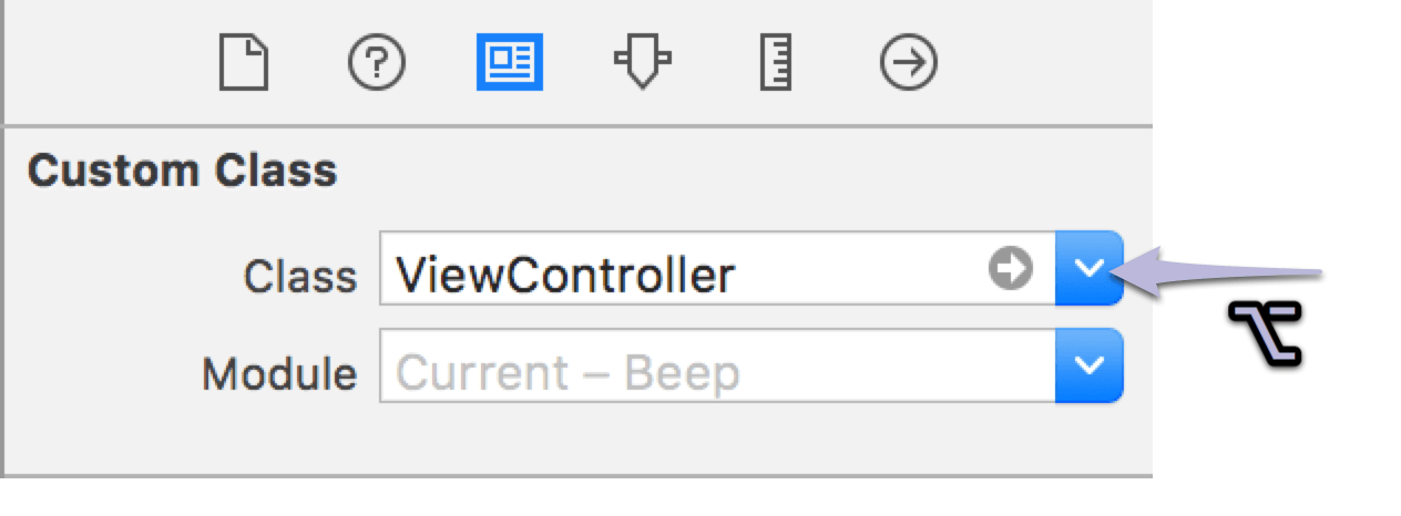 1. Выберите View Controller и откройте Identity Inspector. Указанный класс (Class) содержит код, который отвечает за управление компонентами View этого контроллера.