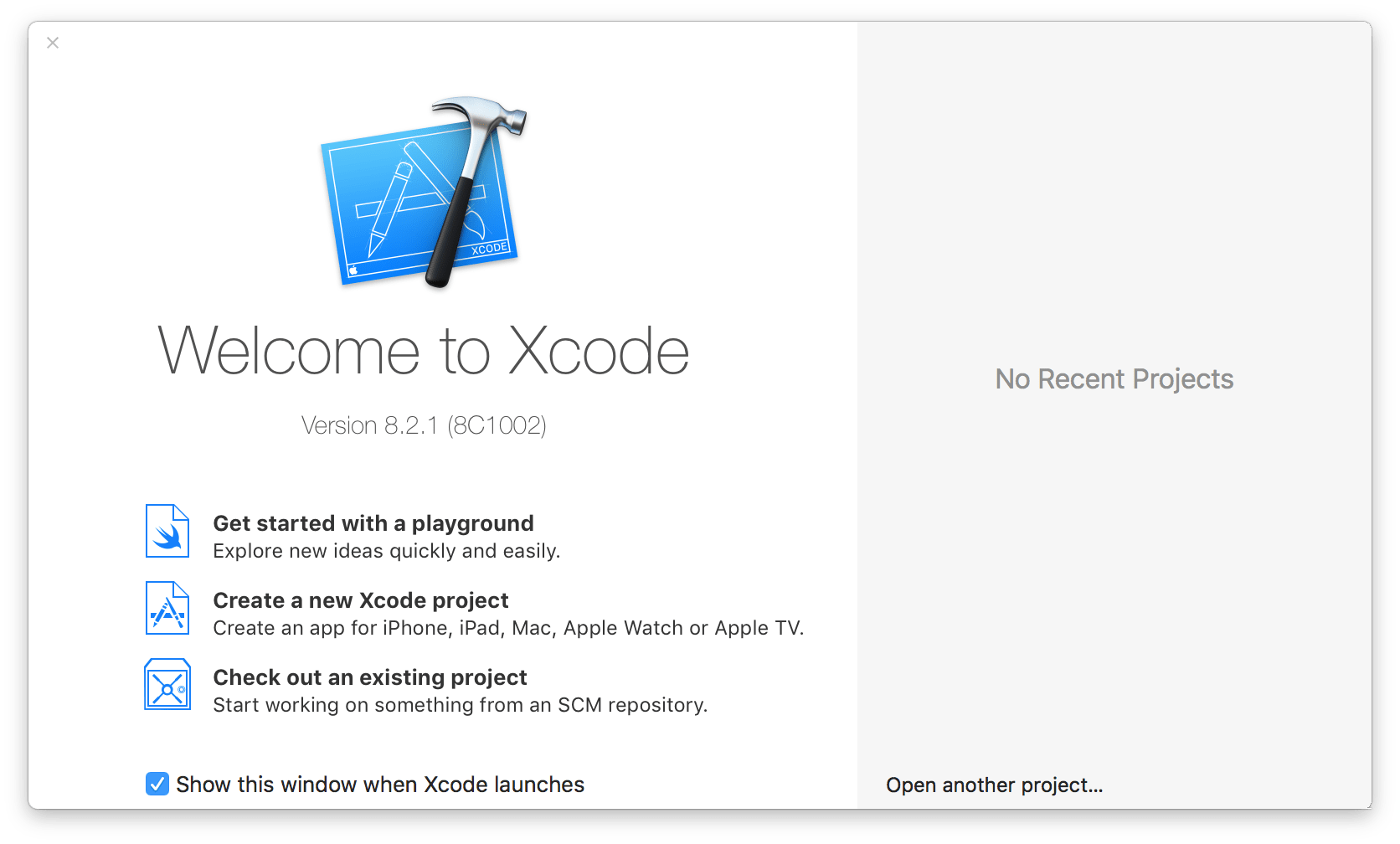 1. Откройте App Store и установите последнюю версию Xcode (это руководство составлялось по Xcode 8.2)