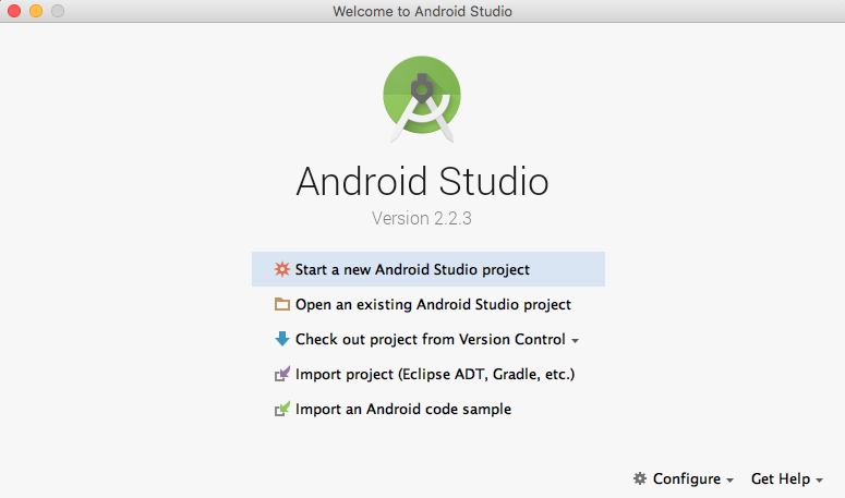 Запустите Android Studio, в окне Android Studio Setup Wizard выберите Start a new Android Studio project (начать новый проект).