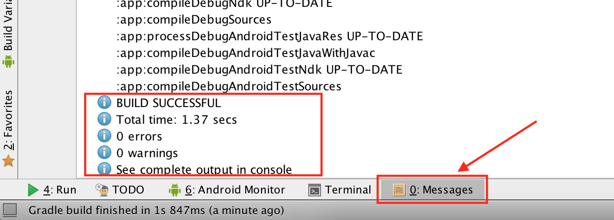 Синхронизация длится несколько секунд. Обновления Gradle появляются во вкладке Messages нижней панели.