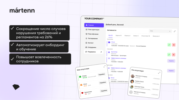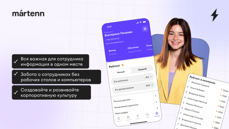 — Сделать мобильный личный кабинет сотрудника, сэкономив свое время и деньги, можно с помощью Martenn — лоукод-платформы для разработки программного обеспечения.
