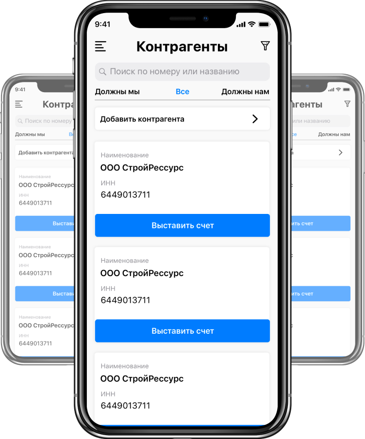 Счета, универсальные передаточные документы, накладные, акты сверки и акты выполненных работ можно выставлять прямо со смартфона — офисный компьютер больше не нужен.