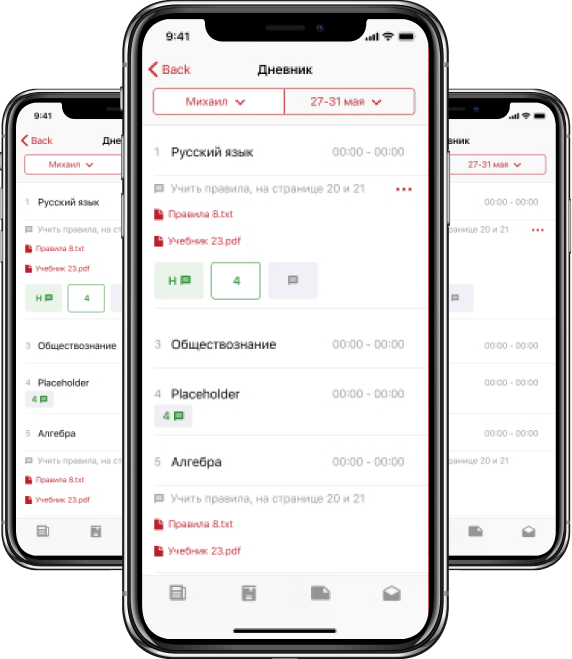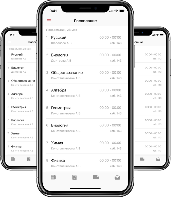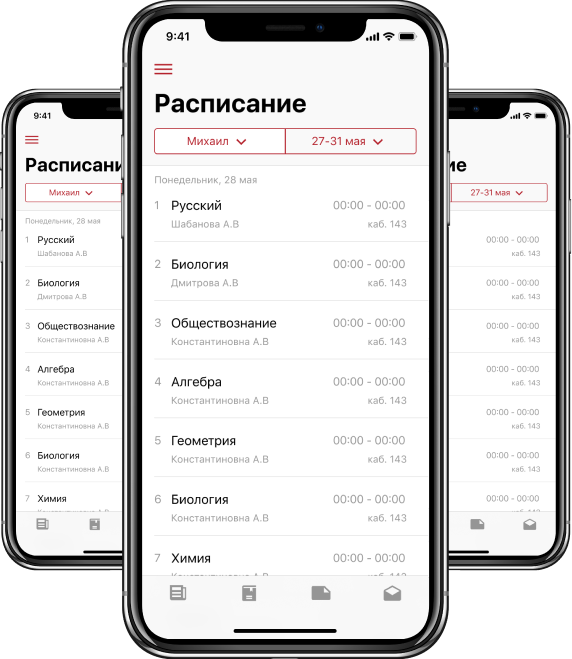 Актуальное расписание уроков для каждого ученика с указанием времени, кабинетов и учителей.