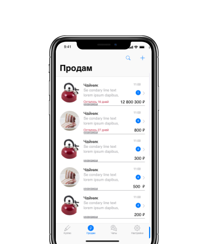 В этом разделе отображаются все товары, которые сейчас хотят купить поблизости. Нажав на плюсик, можно добавить свой запрос.