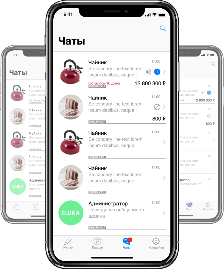 Покупатели и продавцы общаются в чате — им не нужно переходить в другой мессенджер. В чате можно отправлять фото, видео и документы, а также блокировать собеседников.