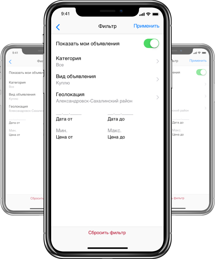 В разделах «Куплю» и «Продам» можно просматривать только объявления из определенных категорий и регионов, например товары для дома из Александровска. А еще можно отфильтровать объявления по локации и цене.