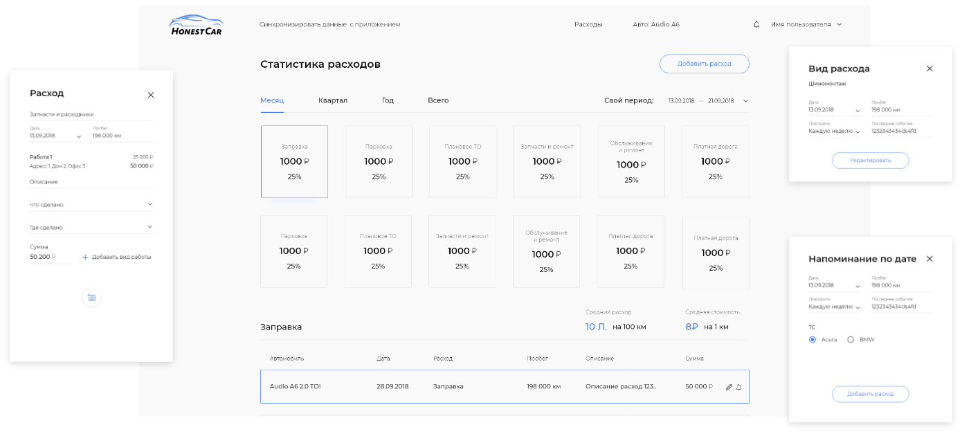 1HonestCar — приложение, которое помогает автовладельцам вести учет расходов на автомобиль и при желании купить или продать машину с прозрачной историей, а автомеханикам — вести управленческий учет своих клиентов.