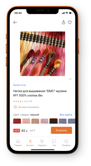 Мы сделали приложение, с которым можно быстро и просто заказывать любые товары для творчества из огромного каталога. Благодаря этому количество заказов растет, а пользователи больше не оставляют гневных отзывов.