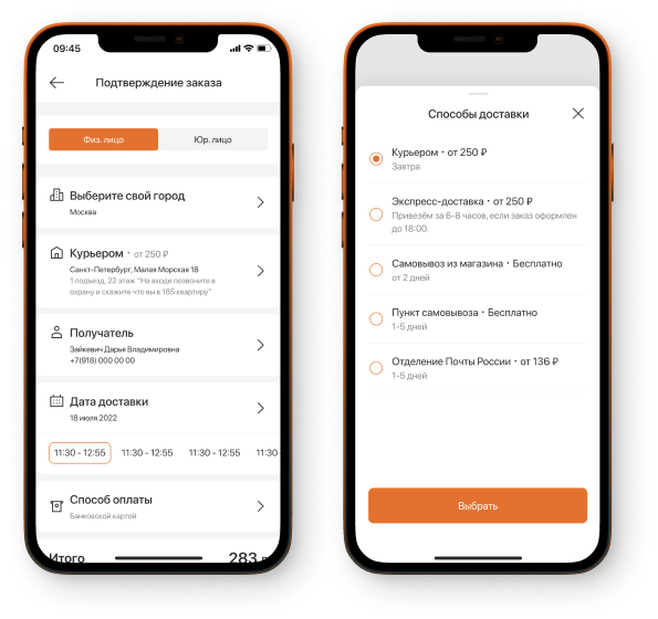 Выбрать нужный способ доставки можно на этапе подтверждения заказа.