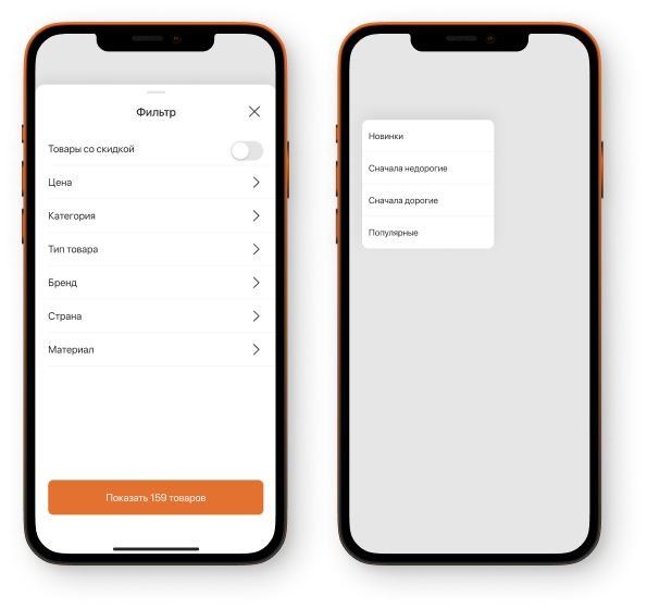 Если пользователь доверяет какому-либо бренду, он может просматривать все товары этого бренда, а не искать их среди других позиций. Мы вынесли кнопку «Бренды» для удобного переключения вида каталога.