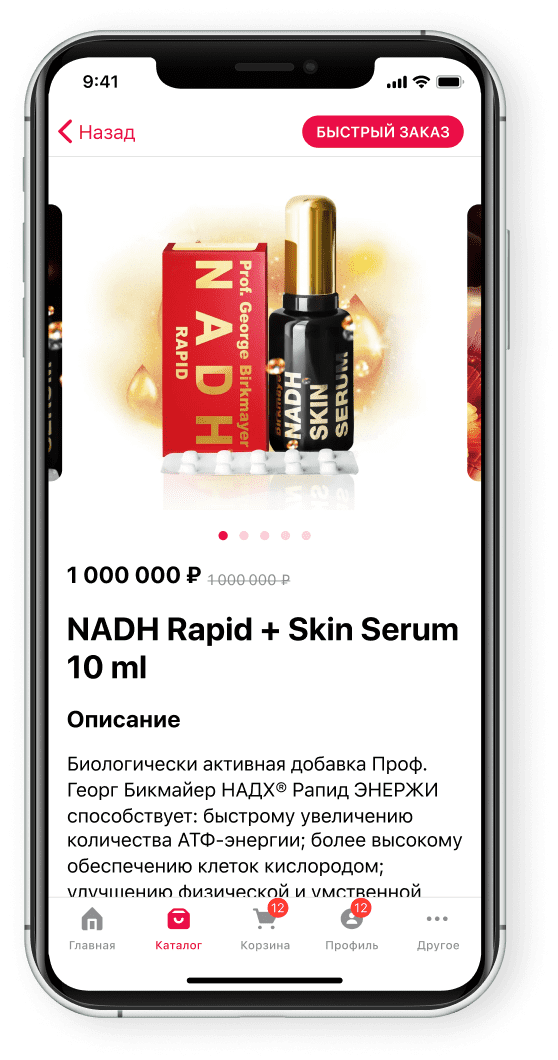 Купить продукцию Nadh теперь можно и в России — для этого достаточно установить мобильное приложение. В нем можно не только быстро оформить и оплатить заказ, но и копить бонусы, читать интересные статьи по теме и первыми узнавать о новинках и акциях.