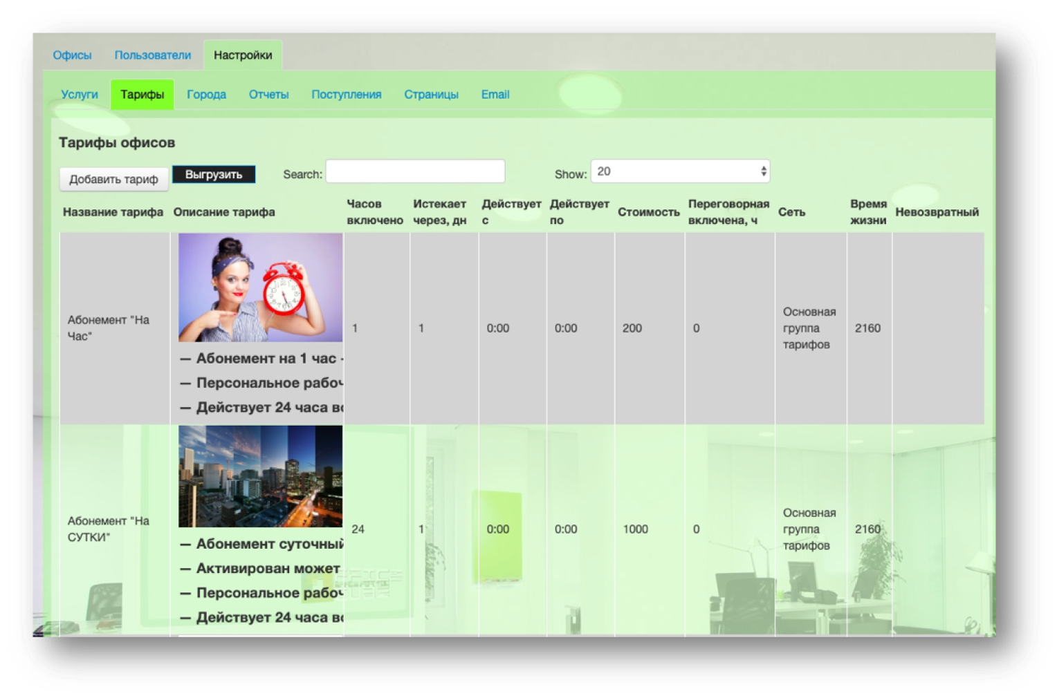 Можно устанавливать и изменять стоимость аренды офисов и рабочих мест, редактировать описание объектов на сайте и обновлять информацию на веб-страницах в модуле бронирования, например на страницах акций и новостей.