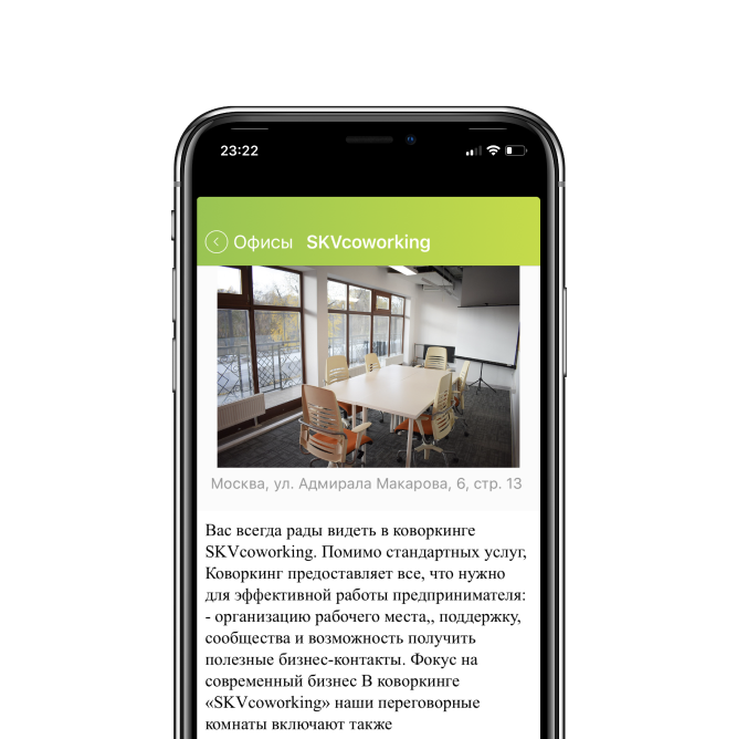 Установив мобильное приложение, резиденты бронируют рабочие места в разных коворкингах из любой точки мира.
