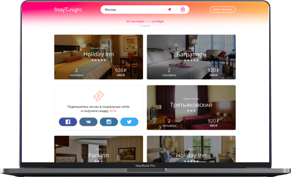 StayTonight — это как сток, только для путешественников. Владельцы отелей могут сдать свободные номера в последний момент и заработать хоть что-то, а путешественники — найти горячие предложения и выгодно снять номер.