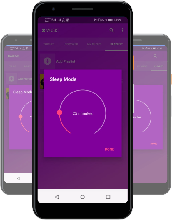 Опция для тех, кто любит слушать музыку перед сном. Установите время, в течение которого планируете слушать любимые треки, и воспроизведение остановится автоматически.