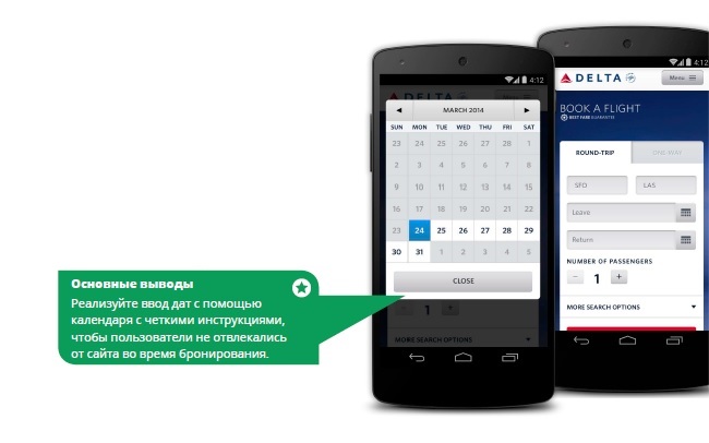 Реализуйте ввод дат с помощью календаря с четкими инструкциями, чтобы пользователи не отвлекались от сайта во время бронирования.