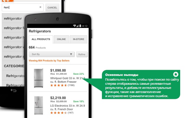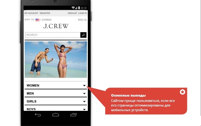 Во всех разделах отчетливо прослеживается, что пользователи мобильных устройств обычно выполняют целенаправленный поиск. Они ожидают, что легко и быстро выполнят на сайте нужные действия удобным для них способом. Чтобы пользователи совершали конверсии, необходимо учитывать их потребности и сопутствующие факторы, однако не в ущерб содержимому сайта.