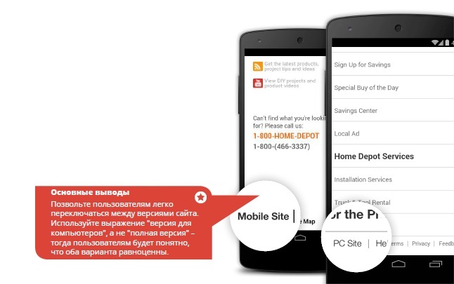 Позвольте пользователям легко переключаться между версиями сайта. Используйте выражение «версия для компьютеров», а не «полная версия» – тогда пользователям будет понятно, что оба варианта равноценны.