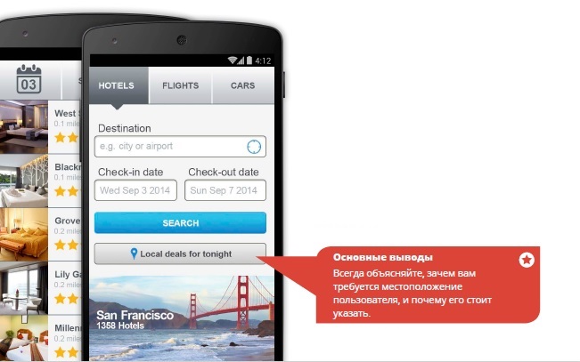 Пользователям всегда должно быть понятно, зачем вы просите указать местоположение. Участников исследования смутило, что при бронировании отеля в другом городе веб-сайт определял их местоположение и предлагал варианты там, где они находились. Оставьте поля местоположения пустыми и добавьте кнопку «Найти поблизости», чтобы заполнить их автоматически.