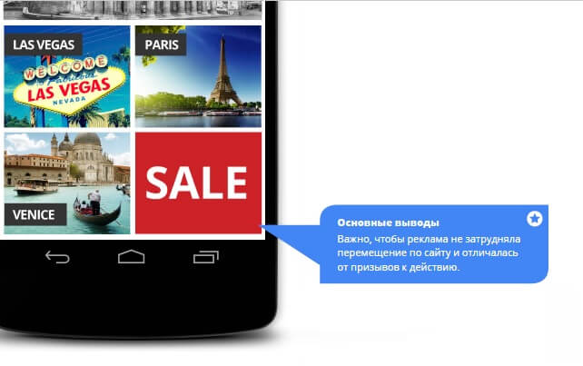 Важно, чтобы реклама не затрудняла перемещение по сайту и отличалась от призывов к действию.