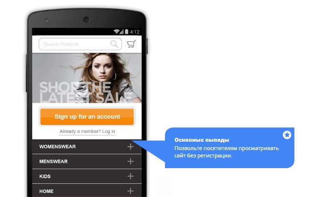 Если вы слишком рано требуете от посетителей регистрации на сайте, это может отрицательно сказаться на конверсиях. Участники исследования были недовольны сайтами, для просмотра которых требовалась регистрация, особенно если речь шла о незнакомом бренде. Прежде чем сообщить свои личные данные, пользователи хотели ознакомиться с контентом и понять, что предлагается на сайте.