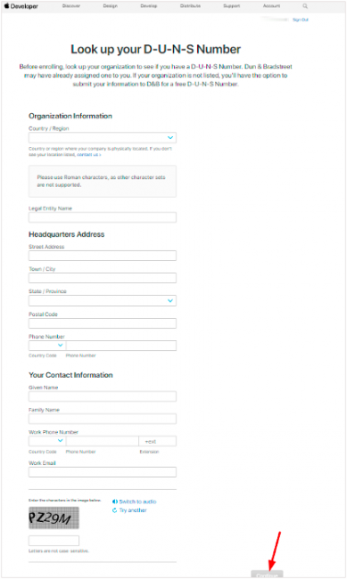 Если компания Apple идентифицировала вас, значит у вашей компании уже есть номер D-U-N-S, который вам отправили на e-mail, указанный вами в анкете, как рабочий. Если нет, вам будет предложено отправить введенную информацию на проверку в компанию Dun & Bradstreet. После рассмотрении заявки с вами свяжутся по почте или по номеру телефона, обычно период рассмотрения длится до 14 дней.