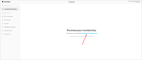 После успешного завершения диалога с сотрудником Apple, перейдите в свой аккаунт Apple и на главной странице нажмите кнопку complete your purchase now.