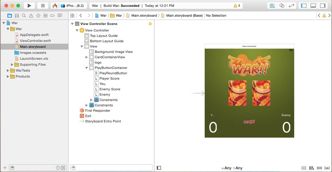 До сих пор речь шла о редактуре файлов с кодом и написании кода, но в Xcode интегрирован конструктор интерфейса, в котором вы можете просматривать Storyboard или файлы XIB. Область редактора становится визуальным конструктором.