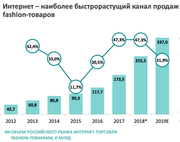 Аналитики РБК пришли к выводу, что интернет-продажи поддерживают фешн-индустрию и помогают ей расти. В 2019 году онлайн-оборот ритейлеров вырос на 32%.