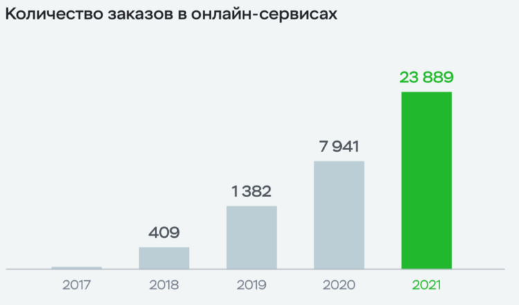По данным «Магнита», на протяжении всего 2021 года наблюдался неизменный рост среднего количества заказов в день. Так, в IV квартале 2021 года среднее количество заказов у этого ритейлера выросло в 15,7 раз по сравнению с аналогичным периодом 2020 года.